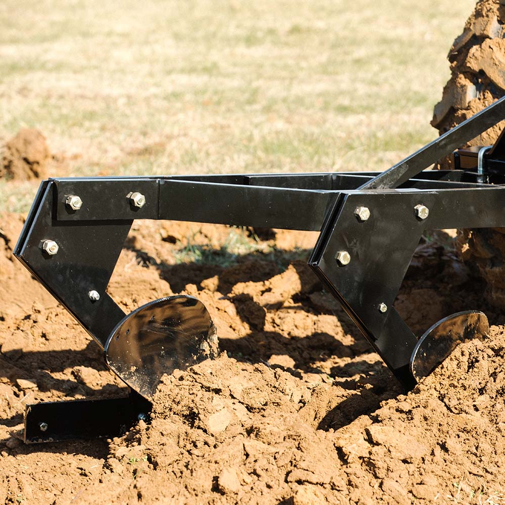 The 3 Point, Double Bottom Turn Plow is ideal for deep plowing and preparing the soil for tilling and planting. The plow provides maximum cutting even through compacted soil. Featuring a turn plow shin, share, moldboard, heavy-duty thick frame, adjustable lower pin settings, lift pins, and top links. This double plow will effortlessly dig through sod and soil while the moldboards turn over the old vegetation and sod to prepare new crops.