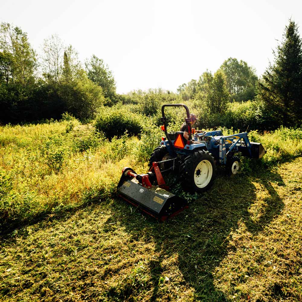 This heavy-duty 3 point flail mower efficiently handles vegetation up to 3 inches thick, making quick work of grass, brush, and vines. The forged hammer flail blades deliver precise cuts while mulching debris into fine particles that naturally fertilize your soil. Compatible with Cat 1 tractors between 30-60 HP, this PTO-powered attachment features an adjustable rear roller for consistent cutting height across uneven terrain. Perfect for maintaining fields, orchards, and vineyards while minimizing dangerous projectile debris.