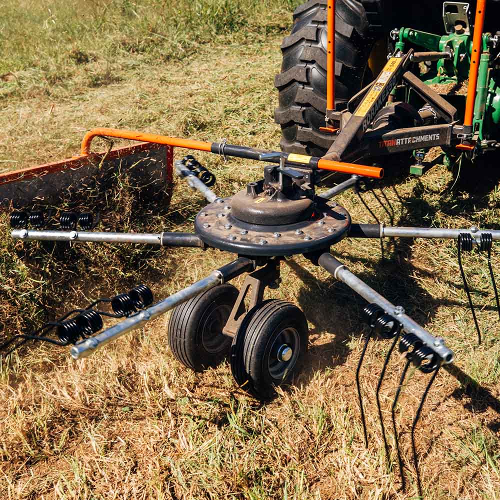 This Cat 1, 3 Point rotary rake forms clean, even windrows while staying gentle on your crop. Use the adjustable deflector to fine-tune your row width for optimal drying and baling.